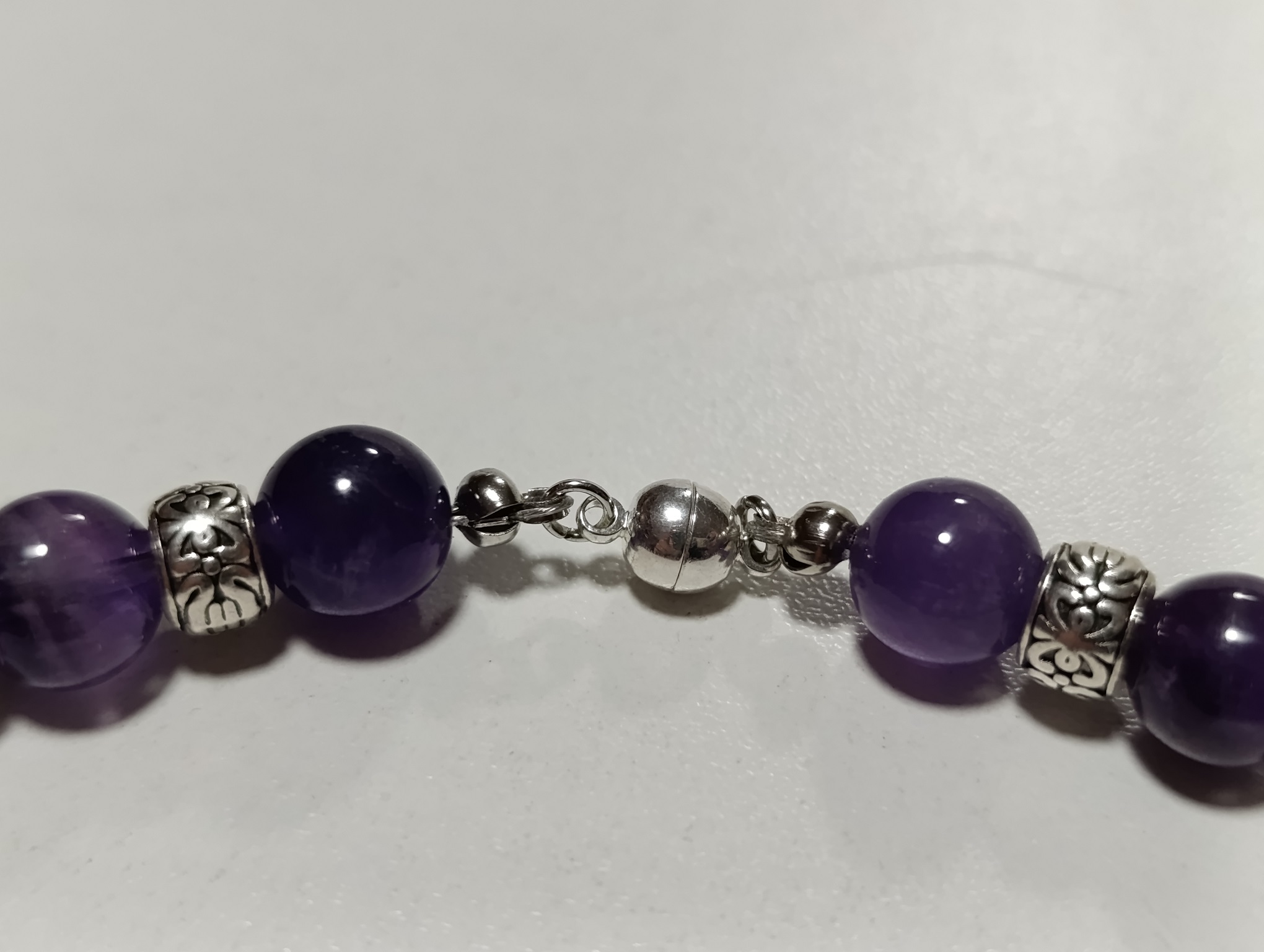 C’est un bracelet avec des perles d’Améthyste du Brésil qualité A, de taille 10 mm.