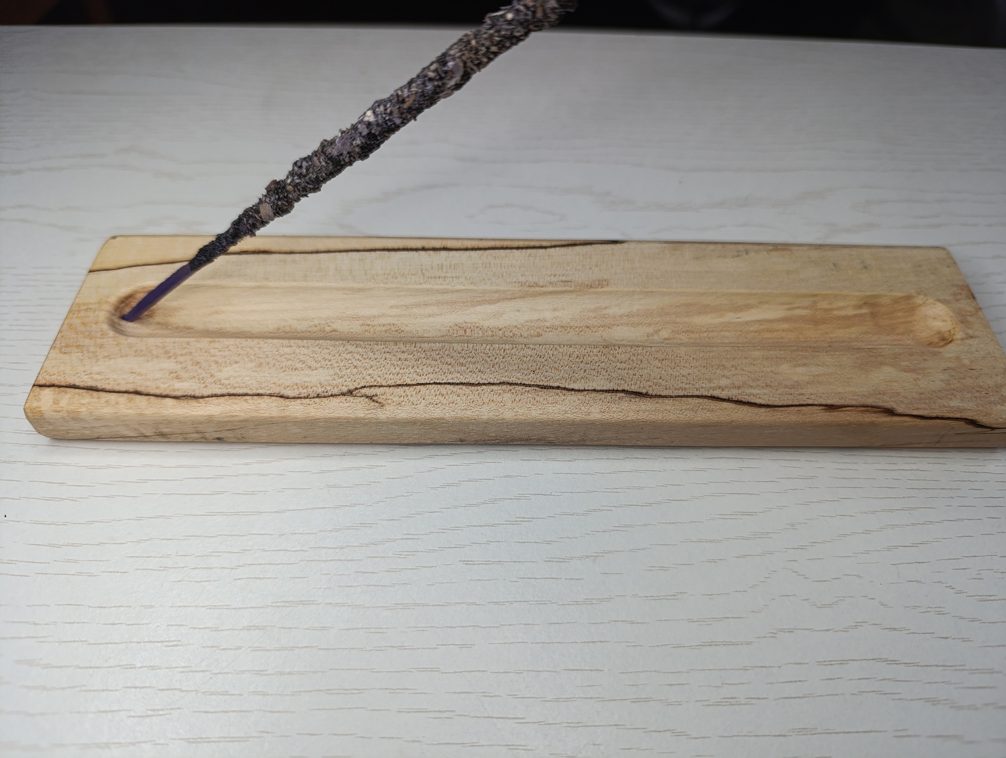 Il s’agit d’un support pour les bâtons d’encens fait artisanalement par nous même. Le support fait 6.5cm par 25cm par 1.2cm.
